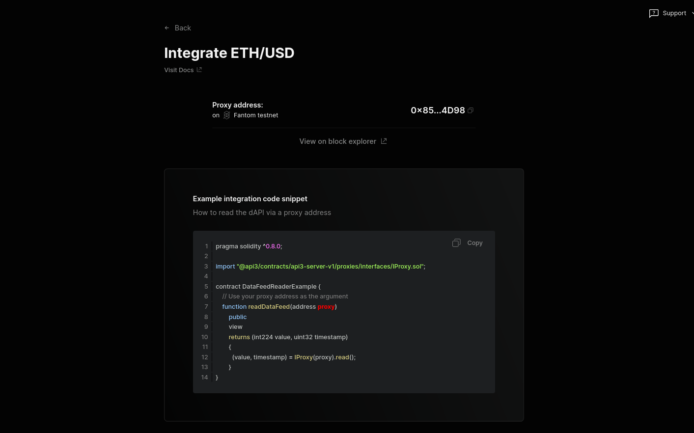 setProxyAddress()is used to set the address of the dAPI Proxy Contract.readDataFeed()is a view function that returns the latest price of the set dAPI.