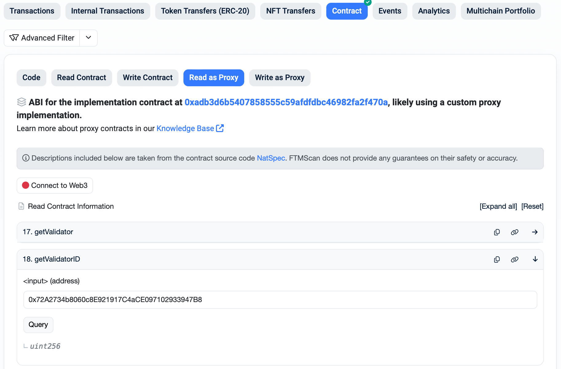 Once your registration is confirmed, you can use the Explorer to get the ID assigned to your validator. The SFC allows you to query this ID for your specific validator wallet using getValidatorID function.